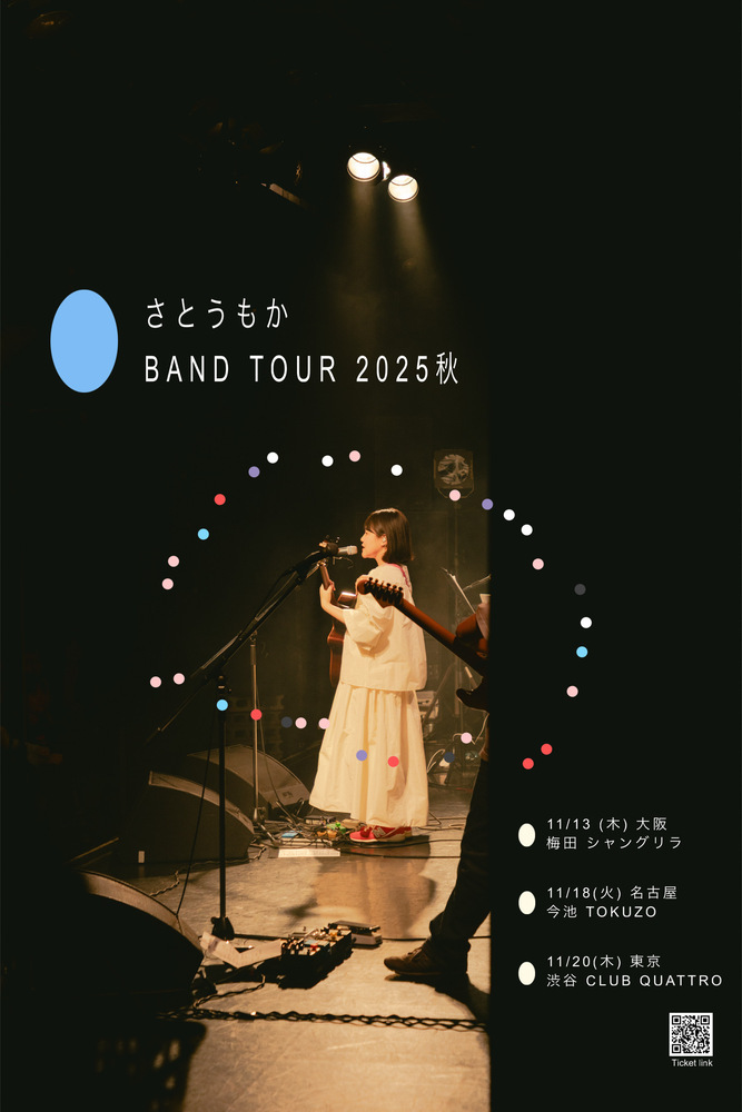 さとうもか BAND TOUR 2025秋 @東京公演 Schedule 2025/11/20(木) 渋谷CLUB QUATTRO 【ツアースケジュール】 ・11/13 (木) 梅田シャングリラ OPEN 18:30 / START 19:00 ・11/18 (火) 今池TOKUZO OPEN 18:30 / START 19:00 ・11/20 (木) 渋谷CLUB QUATTRO OPEN 18:15 / START 19:00 【チケット一般販売中!】 🔗 チケットぴあ 🔗 e+ 【出演メンバー】 Gt シンリズム Ba 厚海義朗 Key 沼澤成毅 Ds 河合宏知 URLをコピーする 報告する